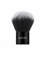 Professionele borstel voor nagelreiniging, essentieel voor het verwijderen van stof en vijlresten geproduceerd door nagelboren of -vijlen tijdens manicure- of verbeteringsbehandelingen. De zwarte haren met witte uiteinden zijn gemaakt van hoogwaardige synthetische vezels, die zacht en zacht zijn voor de huid. De matzwarte aluminium ferrule met MNP-logo valt samen met het handvat en zorgt voor een praktische en comfortabele grip.